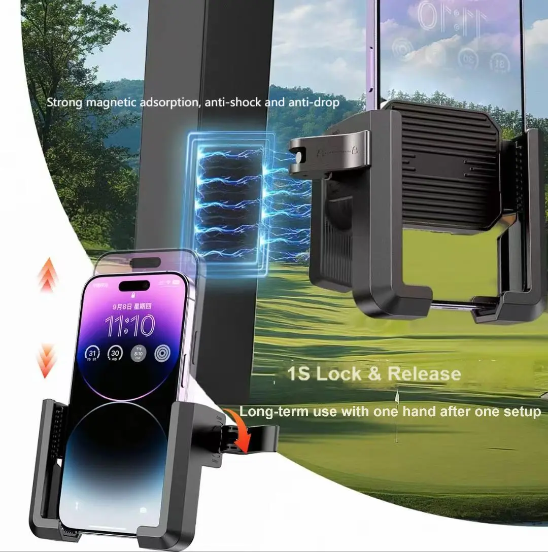Made from premium materials, the Magnetic Golf Cart phone holder features a powerful magnetic system that holds your smartphone securely in place even on the bumpiest terrain. No more fumbling in your bag or worrying about your phone slipping out of your pocket mid-swing. With this mount, your device is securely mounted and easily accessible, allowing you to check scores, navigate the course, or even take important calls without missing a beat.